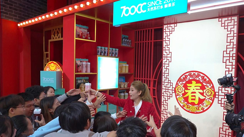 在《过个好年》小品中扮演二姑的肖琬琦不仅带来了精彩的表演,更向全国观众展示了700CC的特色产品,一句东北话:“你别老扒拉我,没看我在这喝芭乐莓了吗”让全国观众认识了700CC当季新品:芭乐莓了。肖琬琦表示,700CC不仅是东北健康茶饮的代表,更是东北文化的传播者,我们希望通过春晚这个平台,让更多人了解东北、爱上东北。