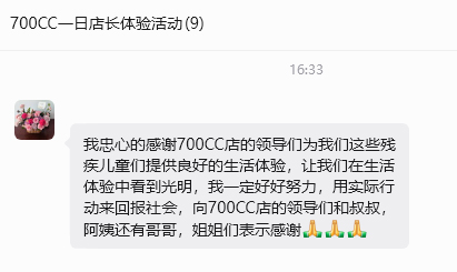 如果说公益跑是让“星宝”们在开放的自然与社会空间中“被接纳”,那么4月2日的“荣誉店长”活动,则是向封闭的职场迈出“被需要”的关键一步。