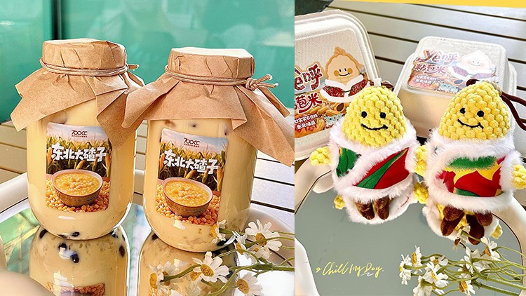 大碴子作为东北传统食物,通常用于制作粥品,700CC研发团队突破了这一传统认知,将其制作成颗粒口感的添加物,为饮品增加了独特的咀嚼感和谷物香气,同时还上新玉米玩偶挂件:ye呼粘苞米,唤起了东北孩子的童年记忆和乡土情感。这款将东北人早餐桌上常见的大碴子粥变成奶茶的创新之举,在社交平台引发热议,众多博主前来打卡,实现了产品破圈。