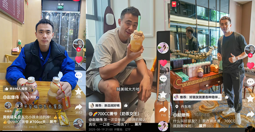 辽宁男篮明星球员赵继伟作为700CC品牌体验官,不仅在今年沈阳和大连两场700CC店长体验日线下活动中与粉丝互动,更在抖音平台上为黄桃系列新品、东北甜菇娘、好多莓神鲜甘露及东北大碴子等产品打call。近日,赵继伟更是通过抖音向700CC萧爷(700CC品牌联合创始人肖琬琦抖音账号)喊话,希望品牌能推出更多基于东北食材的创意饮品,肖琬琦迅速回应,表示已接下挑战,将继续深挖东北食材潜力。